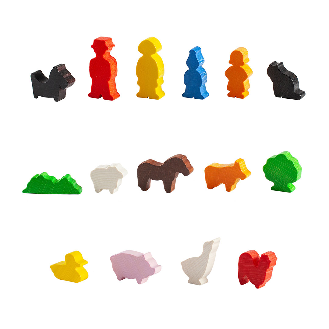 My little farmyard is a set of high-quality handmade wooden farm themed toy figures made from beechwood from SINA Spielzeug – the set includes 16 different figures of animals, bushes and a farmer.